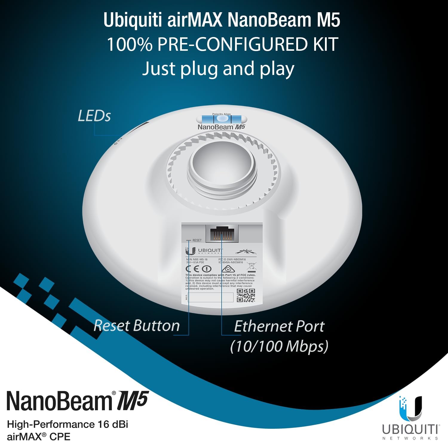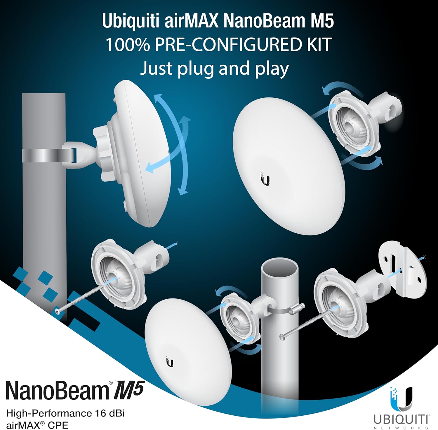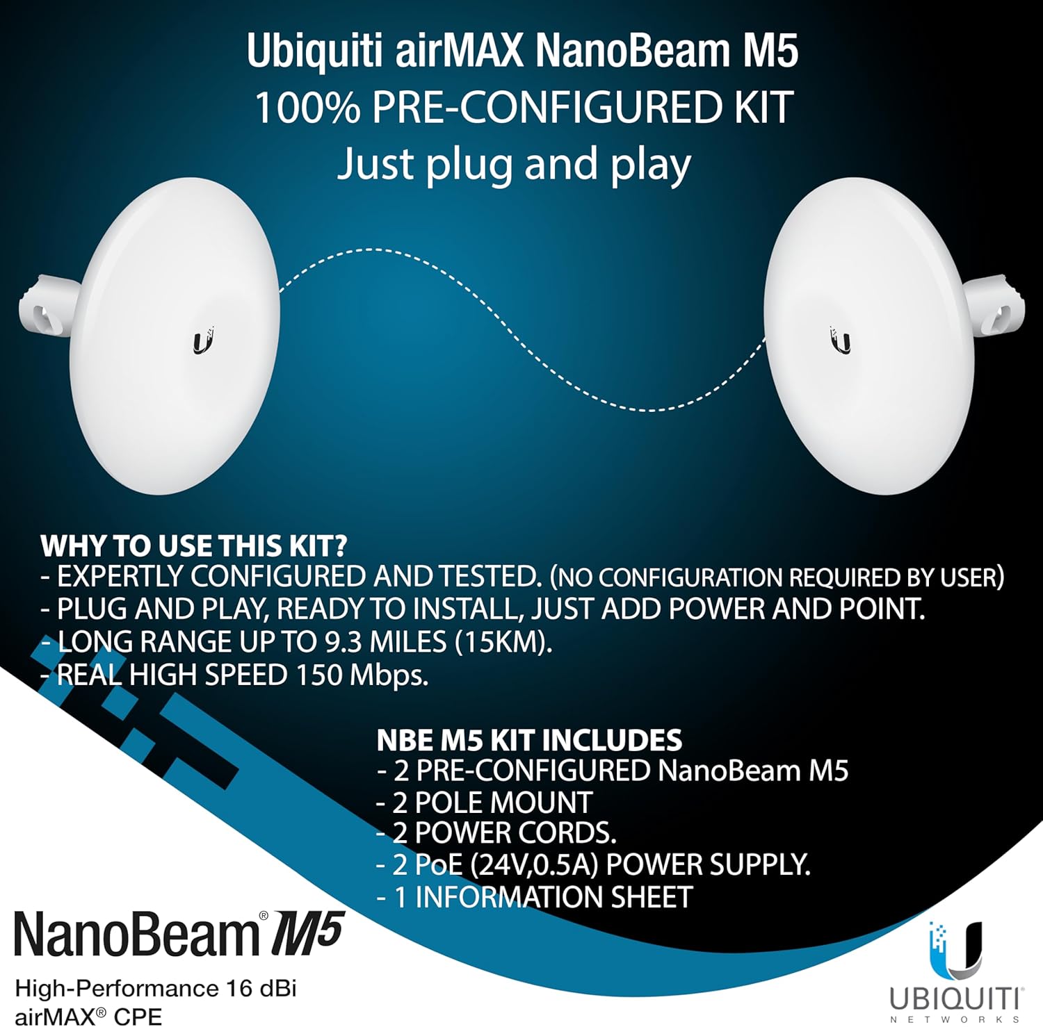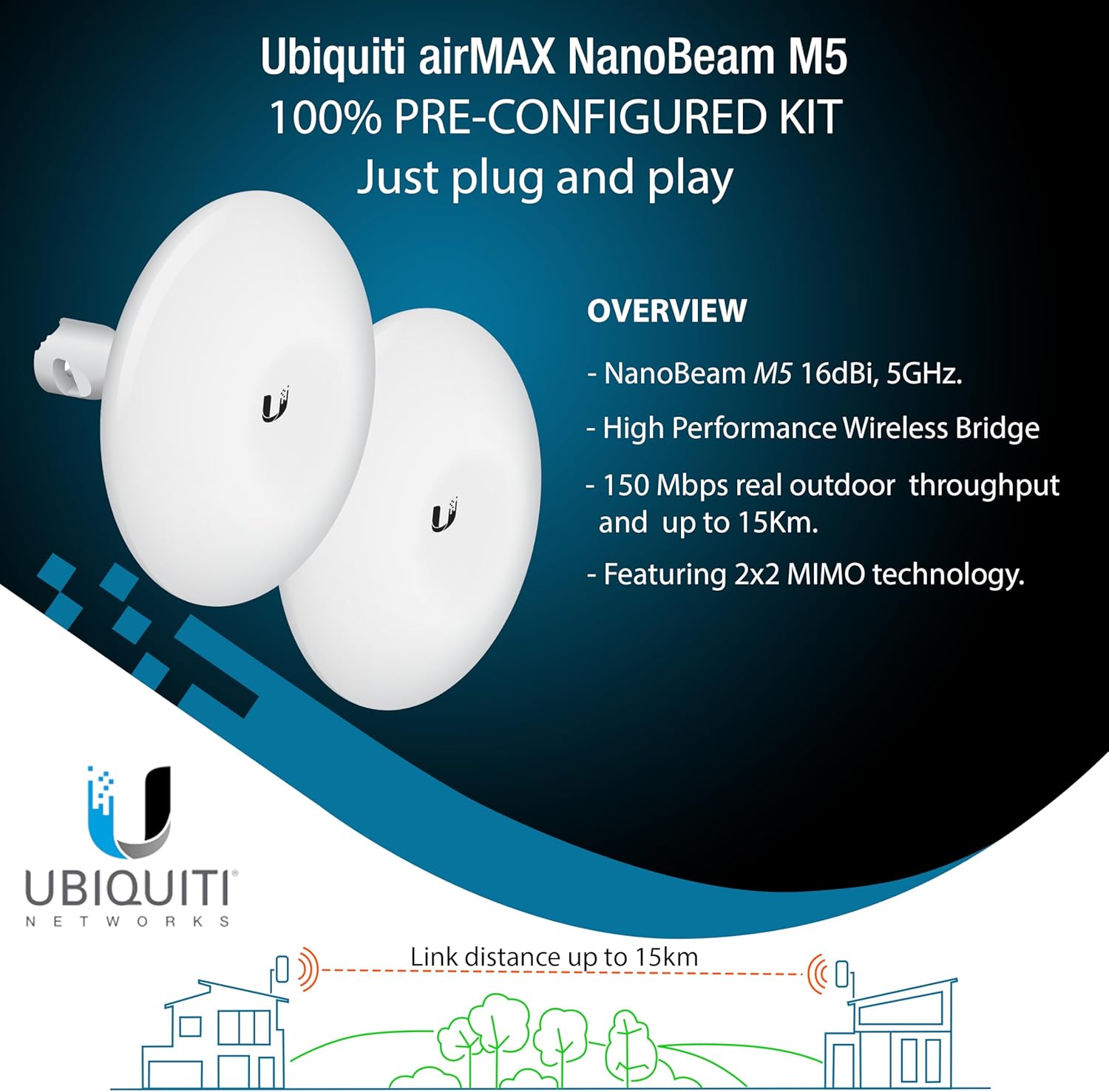 • NanoBeam M5 Exclusive Bundle: Expertly configured set of 2 NanoBeam M5-16 (NBE-M5-16) devices for seamless Point-to-Point Bridge functionality.