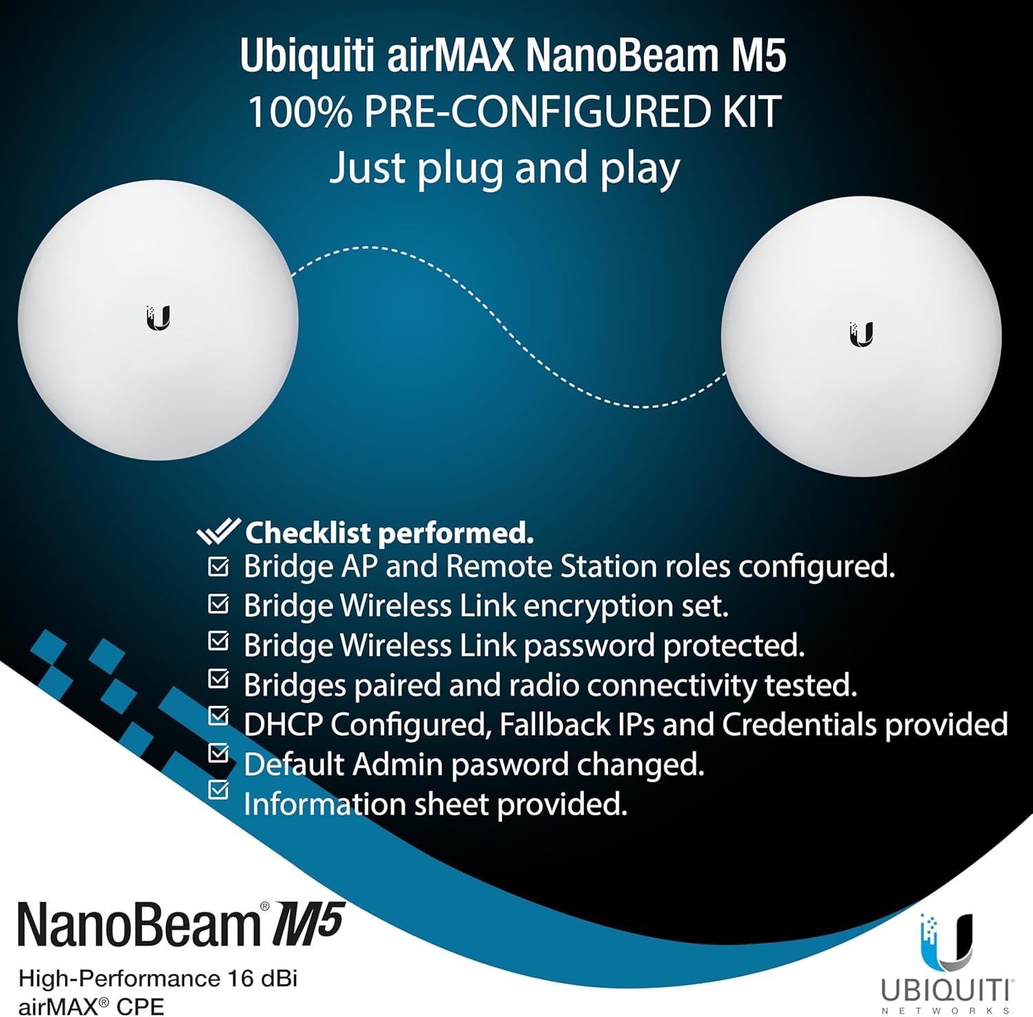 • Reliable Performance: Enjoy optimal performance and connectivity with the bundled NanoBeam M5 devices, designed to meet your networking needs.